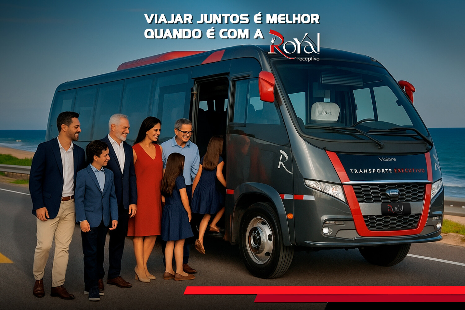 Com a Royal Receptivo e Transporte, seu grupo conta com carros executivos, vans, minivans, micro-ônibus e ônibus de última geração, todos preparados para garantir tranquilidade, segurança e comodidade durante todo o trajeto.